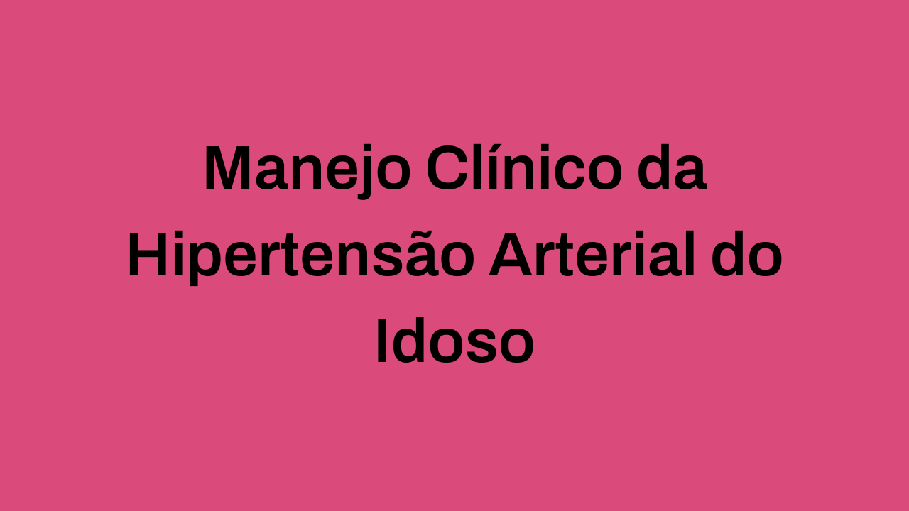 Manejo Clínico da Hipertensão Arterial do Idoso