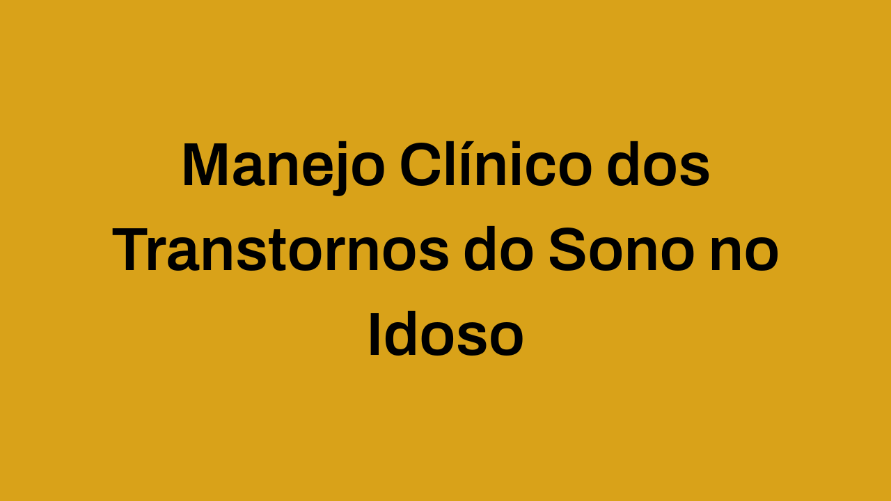 Manejo Clínico dos Transtornos do Sono no Idoso